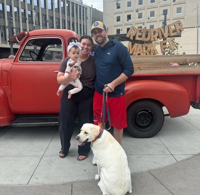 Sam and his wife, Mikayla, have a daughter, Vivian, and a labrador retriever, Nala.